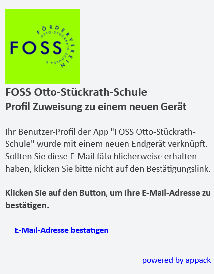 Nicht wundern, der Absender ist "Appack", der Provider der FOSSApp.