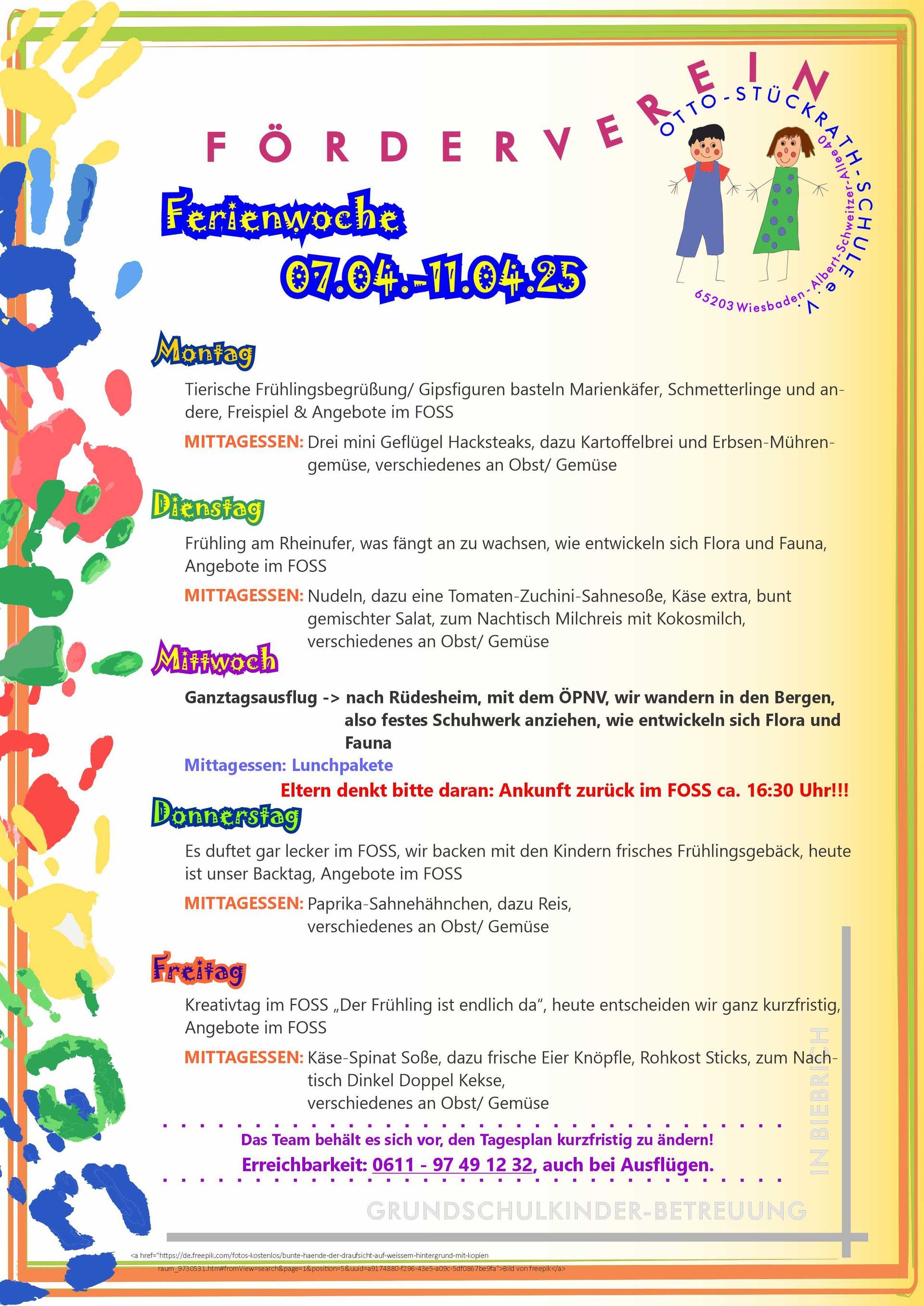 Der FOSS ist bei Ausflügen geschlossen und unbesetzt, es können keine Kinder einzeln betreut werden, alle Kinder sind auf den Ausflügen dabei.