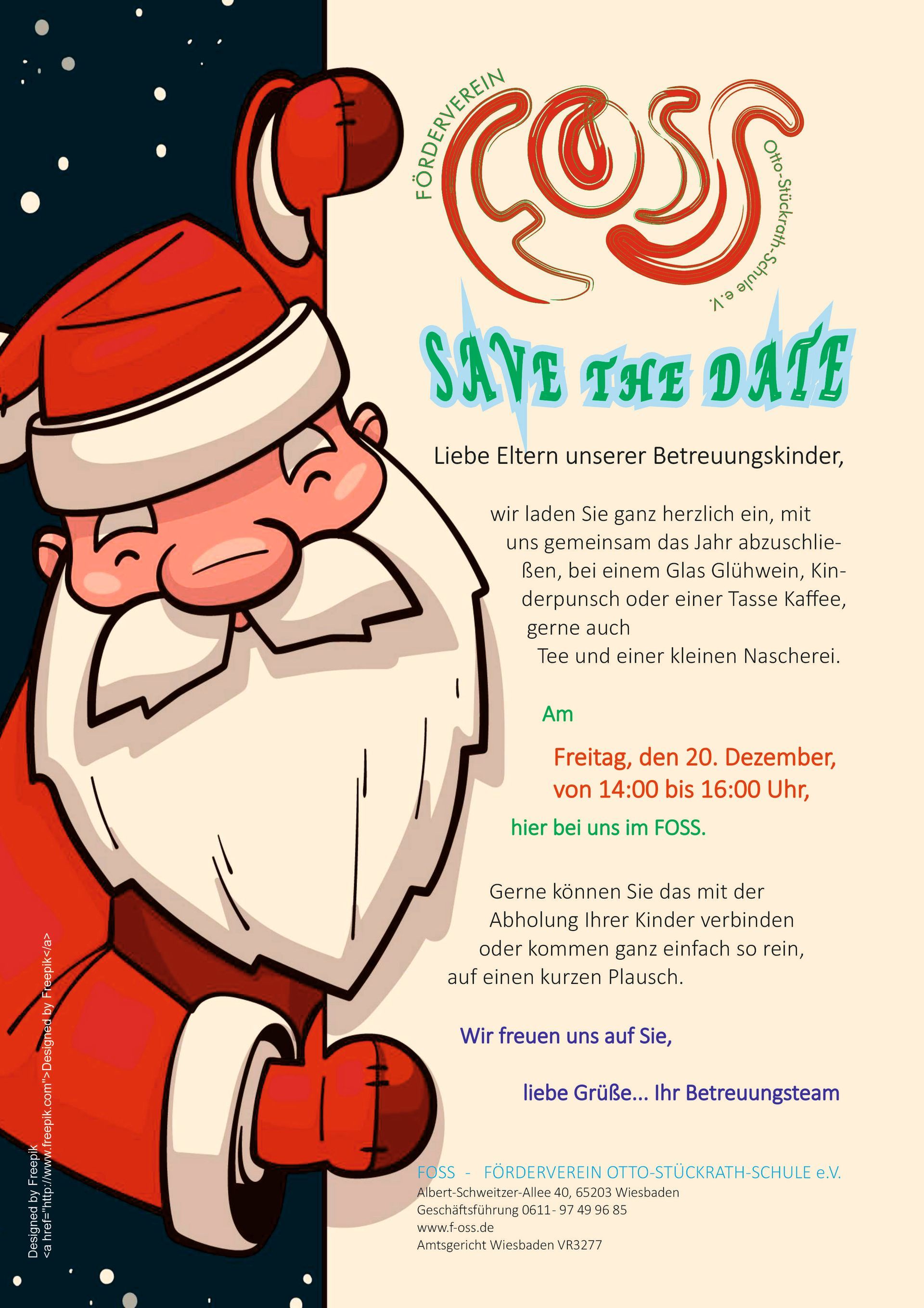 am Freitag, den 20-12-2024, wollen wir mit Ihnen gemeinsam das Betreuungsjahr 2024 zu Ende gehen lassen.